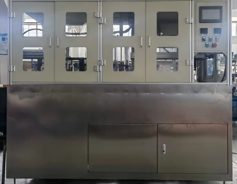 設(shè)備概述MM-DWQX-01 全自動(dòng)軸類零件定位清洗裝盤機(jī),設(shè)備結(jié)構(gòu)簡(jiǎn)單,能耗低,高效穩(wěn)定,是提高產(chǎn)品質(zhì)量的優(yōu)先選擇! 功能描述1、連線自動(dòng)上料機(jī)械手取料放入清洗設(shè)備內(nèi), 工藝流程自動(dòng)上料 → 定位式罩懷清洗→自動(dòng)吹干 → 霧化涂油防銹→自動(dòng)擺盤→ 整盤出料 標(biāo)準(zhǔn)配置控制系統(tǒng) 歐姆龍 油泵 南方泵 氣動(dòng)元件 亞德克 輸送電機(jī) 中大 觸摸屏 威綸通 各類開關(guān) 國(guó)產(chǎn) 技術(shù)參數(shù)型號(hào)范圍 MM-DWQX-01 外徑:60-100 mm 工作節(jié)拍 MM-DWQX-01 8-9秒/件 進(jìn)料高度 850±50 mm (注: 機(jī)腳到上料皮帶高度) 電壓頻率 380V / 三相 / 50HZ 氣源壓力 0.4~0.6 Mpa (注:進(jìn)氣源需冷凍干燥處理) 體積/重量 MM-DWQX-01 2200×1400×1900mm / 1000kg 設(shè)備圖片