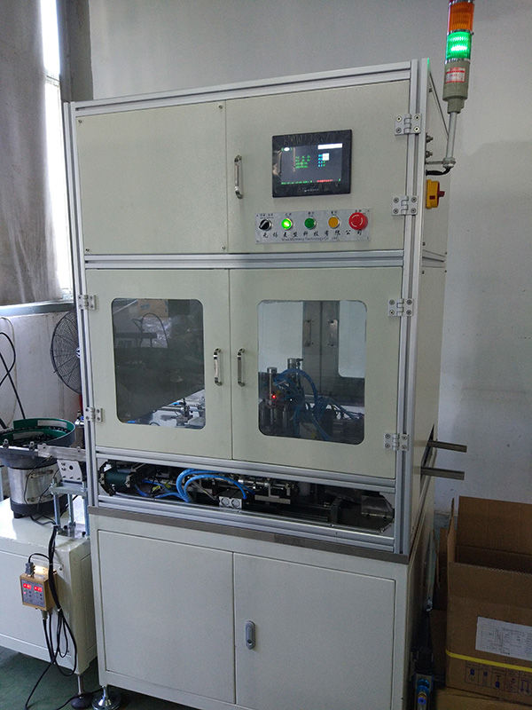 振動盤自動認面→PU皮帶送料→夾持機構搬送→光纖檢測→自動注脂→自動勻脂→NG排出→OK品出料
